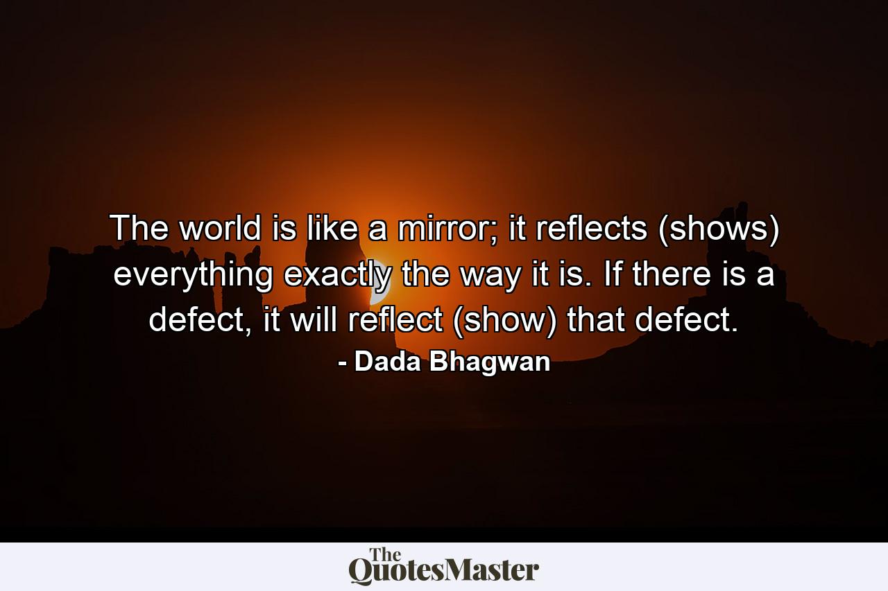 The world is like a mirror; it reflects (shows) everything exactly the way it is. If there is a defect, it will reflect (show) that defect.
