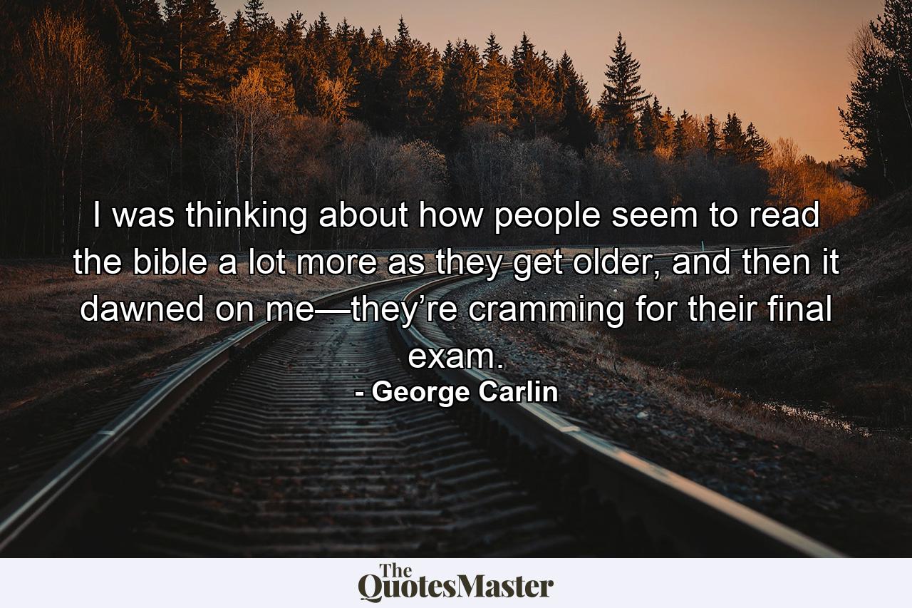 I was thinking about how people seem to read the bible a lot more as they get older, and then it dawned on me—they’re cramming for their final exam.