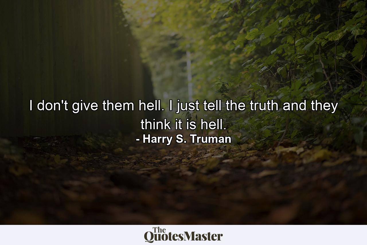 I don’t give them hell. I just tell the truth and they think it is hell.