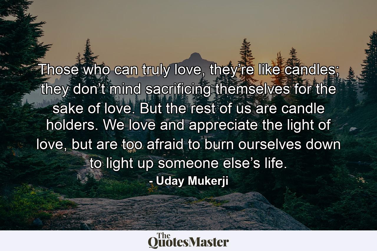 Those who can truly love, they’re like candles; they don’t mind sacrificing themselves for the sake of love. But the rest of us are candle holders. We love and appreciate the light of love, but are too afraid to burn ourselves down to light up someone else’s life.