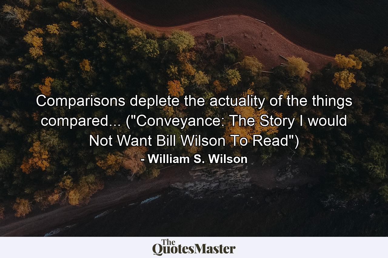 Comparisons deplete the actuality of the things compared… (“Conveyance: The Story I would Not Want Bill Wilson To Read”)